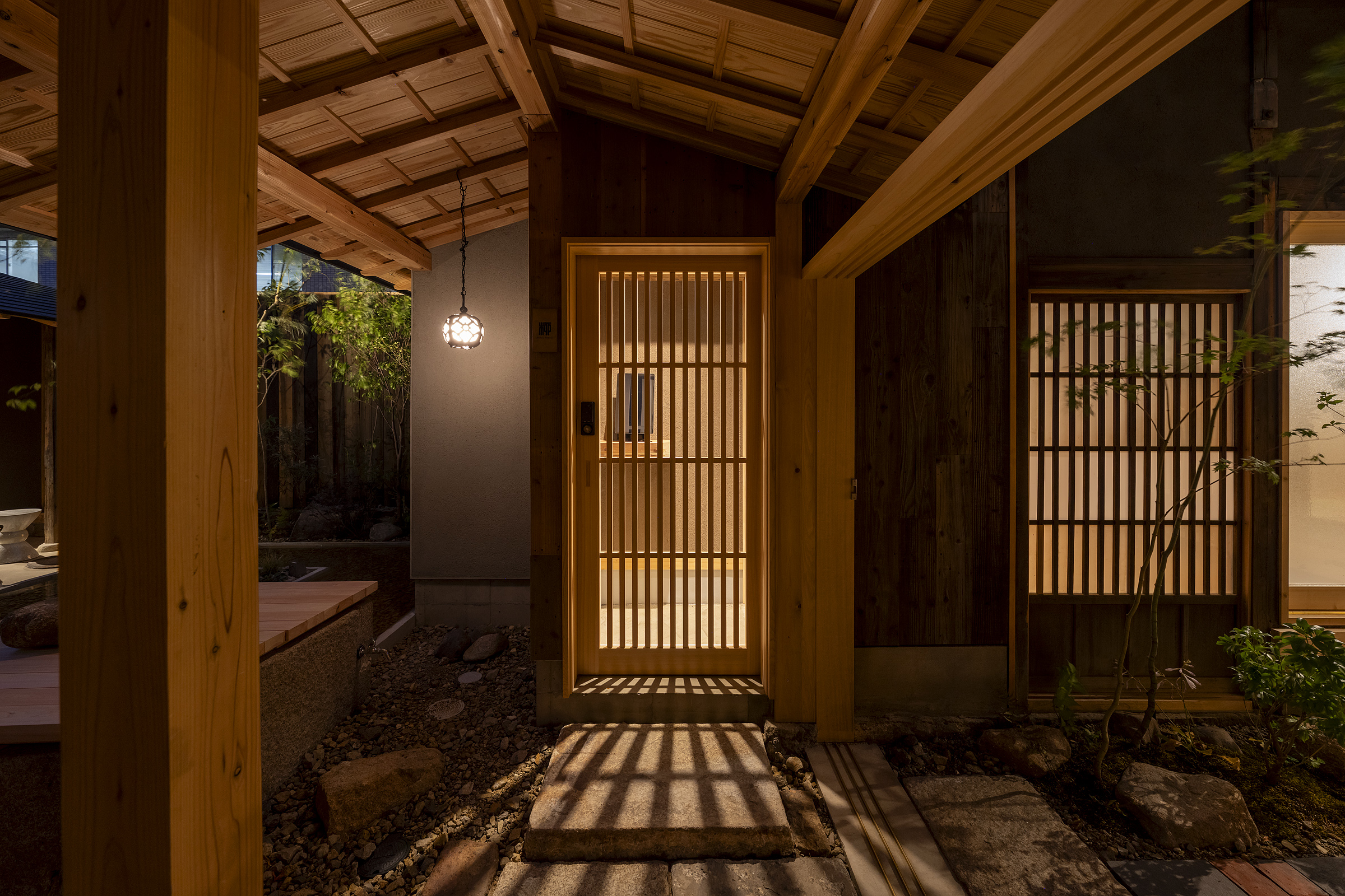 江戸末期に建てられた元堺打刃物商店をリノベーションした「SAKAINOMA PLAZA 柳」の敷地内にあり、店舗が入居する母屋から中庭を抜けたさらに先に位置する宿泊者だけのプライベート空間が広がる一棟貸切の宿.